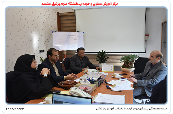 در این جلسه که با حضور معاون آموزشی دانشگاه، مدیر بازرسی دانشگاه، مدیر مرکز آموزش مهارتی دانشگاه و نماینده مدیریت امو حقوقی دانشگاه در محل دفتر معاونت آموزشی دانشگاه برگزار گردید،در خصوص مشکلات و چالش های این حیطه، تقسیم کار بین حوزه های دخیل و فرایند بررسی و برخورد با تخلفات بحث و تبادل نظر صورت گرفت.