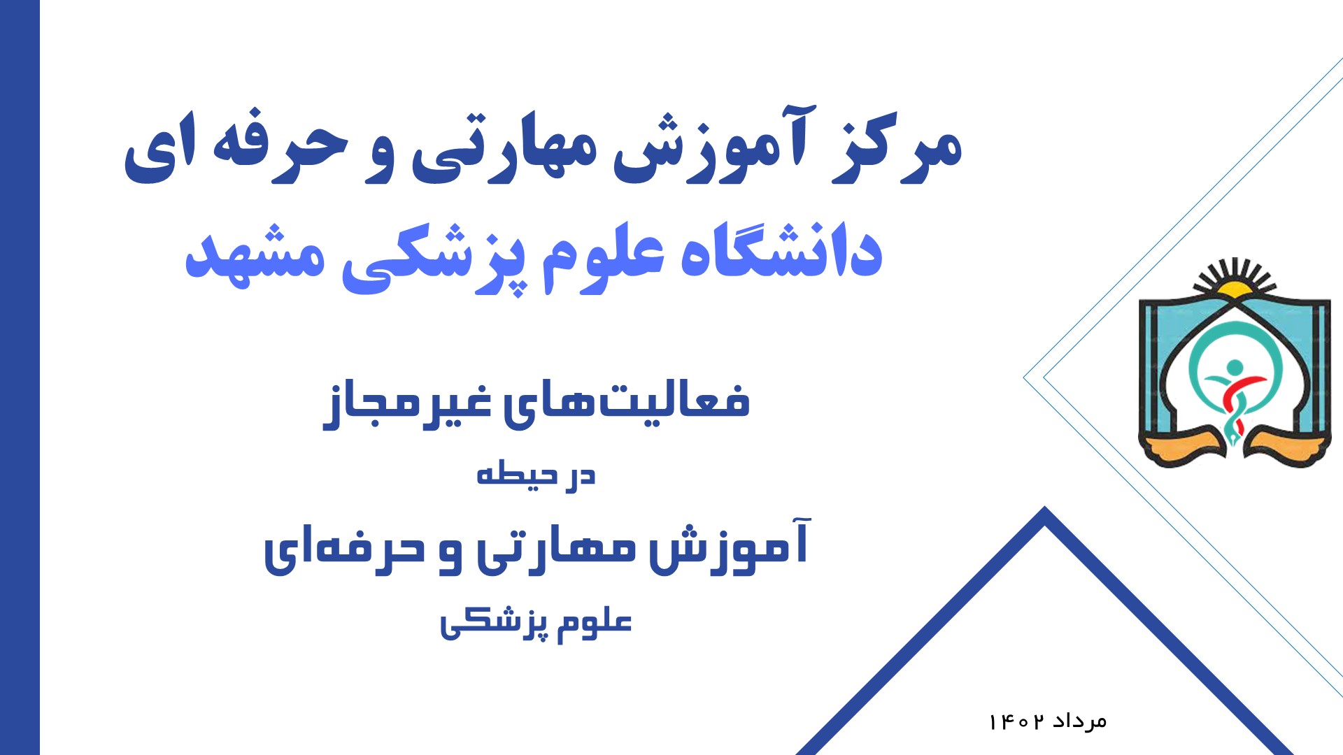 وبینار کشوری پیشگیری و برخورد با تداخلات غیرمجاز آموزش پزشکی روز دوشنبه 1402.05.23 و با ارائه مرکز آموزش مهارتی و حرفه ای دانشگاه علوم پزشکی مشهد برگزار گردید.